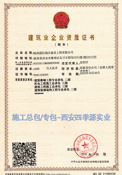 • 西安四季源實業(yè)專業(yè)代辦建筑資質(zhì),升級 增項 延期